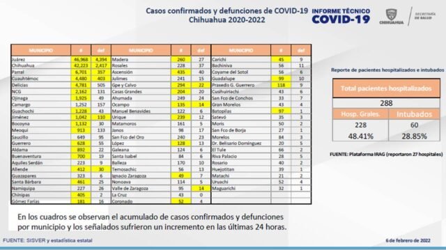 Además de los tres registrados en Juárez, los nuevos decesos agregados al reporte estatal este domingo ocurrieron en Chihuahua (9), Parral (4), Guadalupe y Calvo (3), Valle de Zaragoza (2), Allende (1), Cuauhtémoc (1), Jiménez (1) y Ocampo (1).
