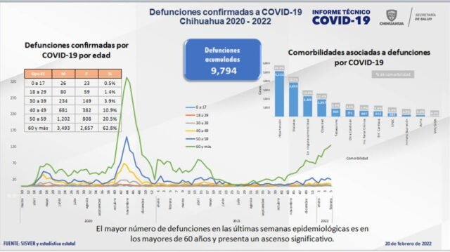 En su reporte para este domingo 20 de febrero, la Secretaría de Salud de Chihuahua dio a conocer que en el estado se presentaron 763 nuevos casos confirmados de Covid-19, con los cuales se llega a la suma de 131 mil 350 contagios. Además, hubo 25 nuevos decesos, para acumular 9 mil 794 fallecimientos desde el inicio de la pandemia.