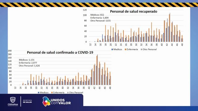 Un total de 4 mil 634 trabajadores de la salud en el estado que han enfermado de COVID-19, de ellos 2,077 han sido del área de enfermería, según la Secretaría de Salud de la Zona Norte. Mil 131 médicos y 1,426 empleados de otras áreas han dado positivo al nuevo Coronavirus.
