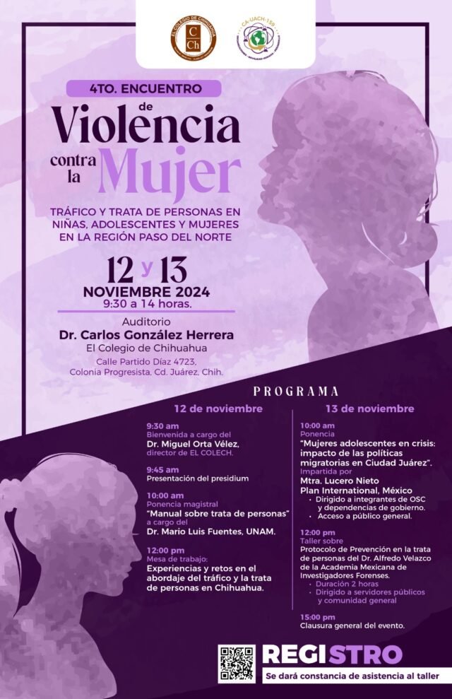 Ciudad Juárez será sede del Cuarto Encuentro de Violencia contra la Mujer que organiza El Colegio de Chihuahua (El Colech). En esta ocasión se abordará como tema principal el tráfico y trata de personas en niñas, adolescentes y mujeres en la región Paso del Norte, informó la investigadora Martha Dena, coordinadora del encuentro.