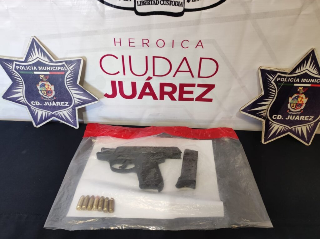 Razón por la cual los oficiales abordaron a dicha pareja respetando en todo momento los protocolos de seguridad y al realizarles una inspección preventiva le localizaron a la mujer fajada a la altura de la cintura un arma de fuego calibre 9 milímetros, con un cargador abastecido con siete cartuchos útiles, procediendo con su detención.