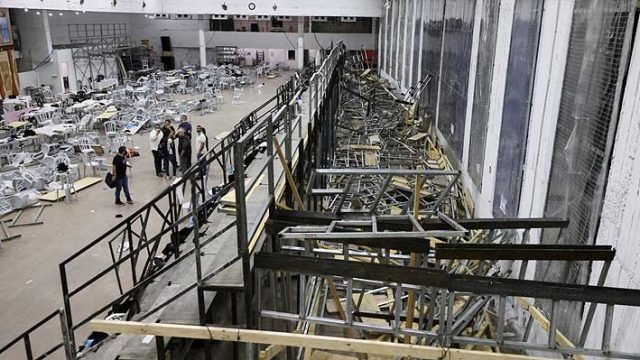 Imágenes de video transmitidas en canales de televisión israelíes mostraron que el derrumbe ocurrió en vísperas del feriado judío de Shavuot en una sinagoga de Givat Zeev, un asentamiento israelí a las afueras de Jerusalén.