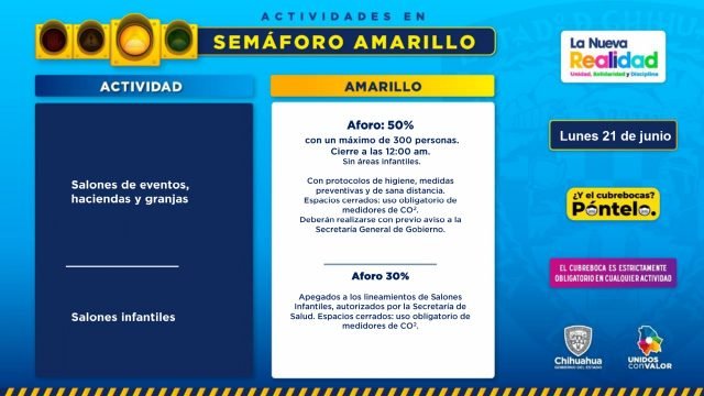 Lo anterior, luego de que el subsecretario de Promoción de la Salud del Gobierno Federal, Hugo López Gatell, anunciara la tarde del viernes 19 de junio, que Chihuahua se mantiene en semáforo amarillo.