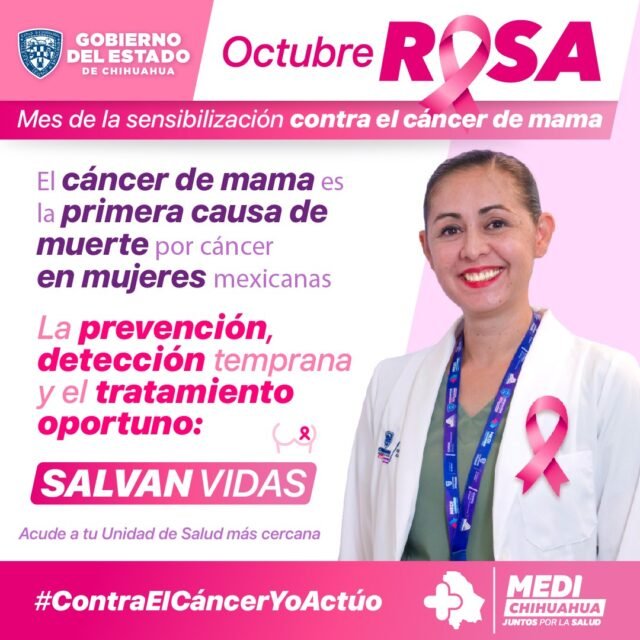 En el marco del mes de la Sensibilización sobre el Cáncer de Mama, la Secretaría de Salud reafirmó el compromiso para garantizar que todas las chihuahuenses cuenten con acceso a servicios médicos de calidad que les permitan prevenir y detectar oportunamente el padecimiento, sin importar el lugar en el que se encuentren.