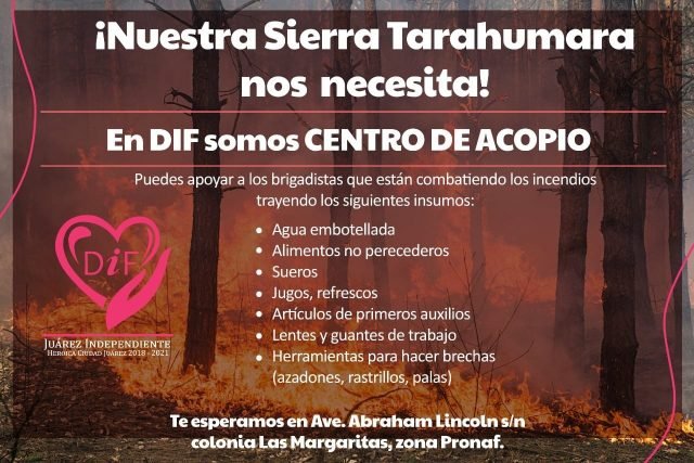 El DIF Municipal de Juárez contribuye como centro de acopio para recabar víveres en beneficio de los brigadistas que combaten incendios en la Sierra Tarahumara.