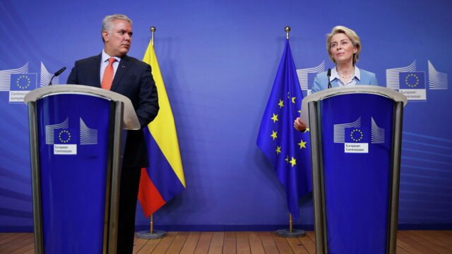 “Colombia es una enorme potencia ecológica, tiene una riqueza tremenda y es un socio indispensable en la lucha contra el cambio climático y nuestra transición en todas las acciones a favor del medio ambiente; ambos compartimos una sólida determinación en este campo y trabajaremos codo con codo en nuestro programa medio ambiental”, dijo por su parte Von der Leyen en la conferencia de prensa conjunta.
