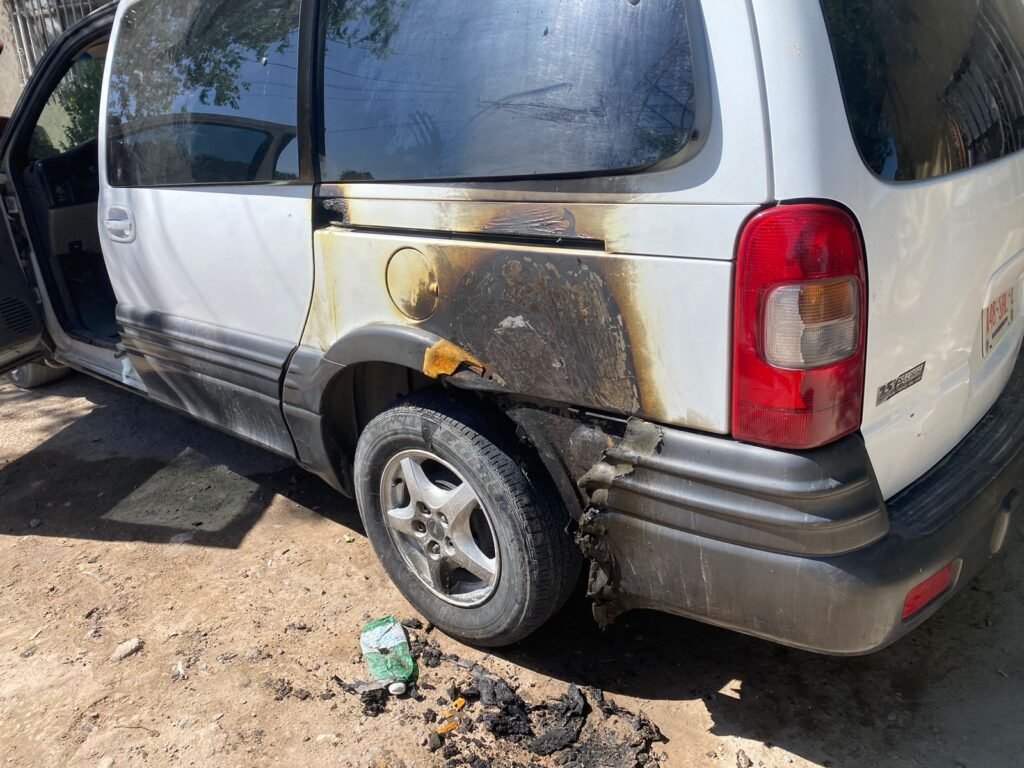 Al entrevistarse con el quejoso, este denunció que minutos antes sorprendió a un sujeto colocando un trapo en el área del depósito de combustible de su vehículo de la marca Pontiac Montana, color blanco, modelo 2000, mientras que un segundo individuo prendía fuego al mismo, causando daños en la pintura al automotor antes descrito.