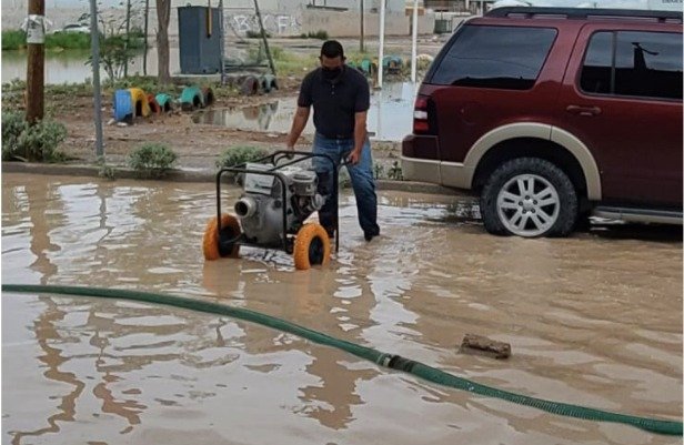 En el fraccionamiento Puente Alto, en Ciudad Juárez, personal de la CEPC apoyó a los residentes ante el reporte de inundaciones en varias viviendas. Ahí se realizaron maniobras para la extracción del agua.