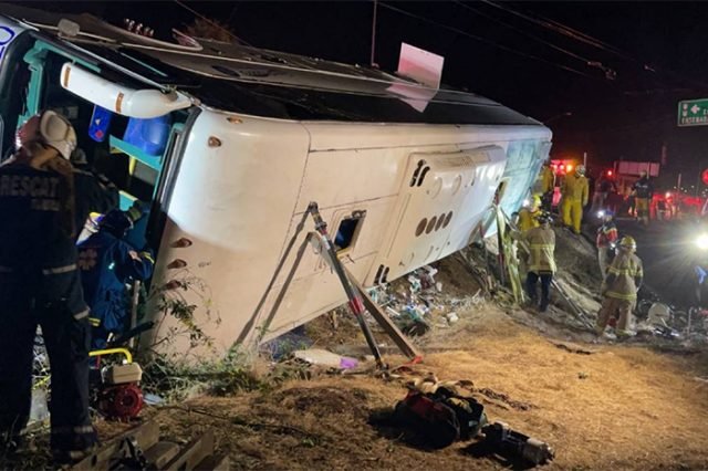 MÉXICO- Al menos siete muertos y alrededor de una treintena de heridos, algunos de gravedad, dejó la volcadura de un autobús de pasajeros registrada durante la noche del martes en las inmediaciones del municipio de playas de Rosarito, en el estado de Baja California, confirmó la Dirección de Bomberos municipal.