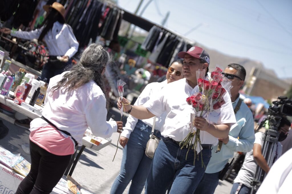 El alcalde recorrió los puestos y agradeció a las madres de familia, muchas de ellas trabajadoras del tianguis, por su labor dentro de las familias fronterizas.