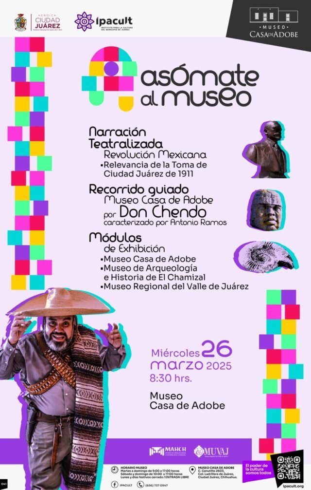 Durante la visita, los estudiantes y maestros disfrutarán de una narración teatralizada sobre la Revolución Mexicana, donde a través de la caracterización de figuras históricas como Francisco I. Madero y Adela Velarde Pérez, se explicará la importancia de la Toma de Ciudad Juárez de 1911 en la caída del régimen de Porfirio Díaz.
