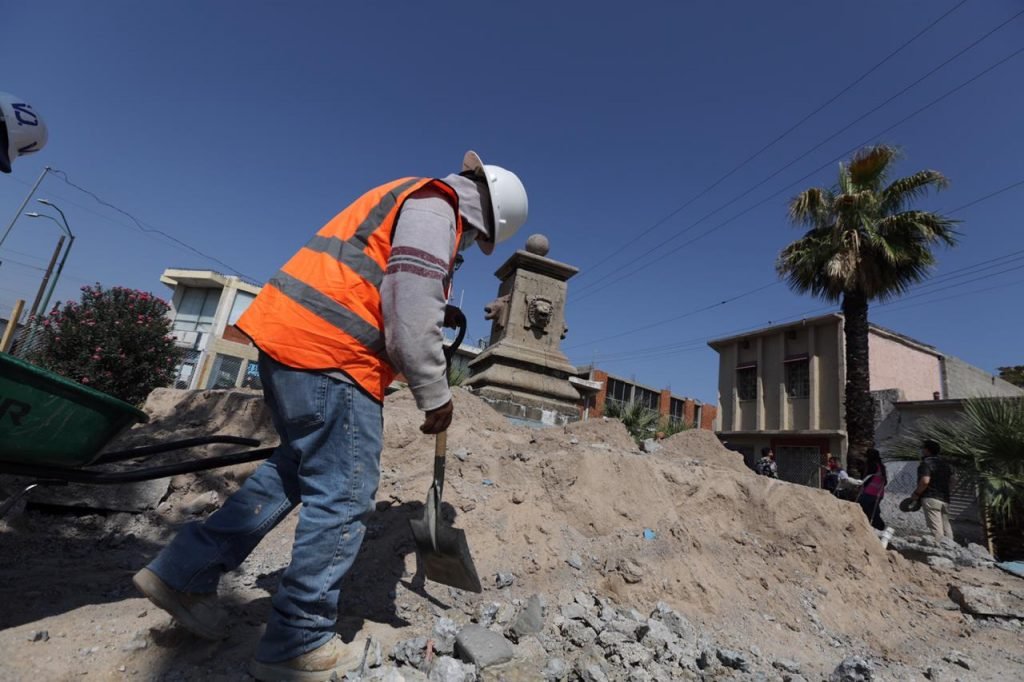 Se están realizando trabajos de remodelación en lo que es La Pila de la Chaveña, se está restaurando lo que es la fuente principal, además de trabajos complementarios a todo el sistema de la fuente y banquetas, es lo que se pudo apreciar en el recorrido.