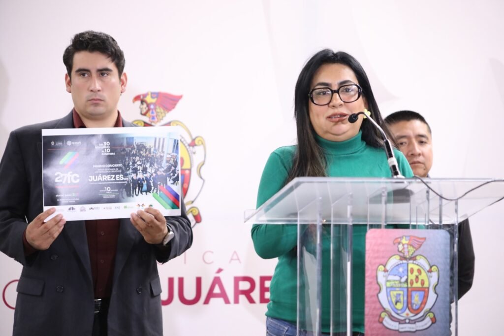 El Instituto para la Cultura del Municipio de Juárez (IPACULT) anunció en conferencia de prensa el cierre de la edición 27 del Festival de la Ciudad este martes, con un magno concierto titulado “Juárez Es…” a cargo de la Banda Sinfónica de los Semilleros Creativos, que se llevará a cabo a las 7:00 de la tarde en el Centro Cultural Paso del Norte (CCPN).