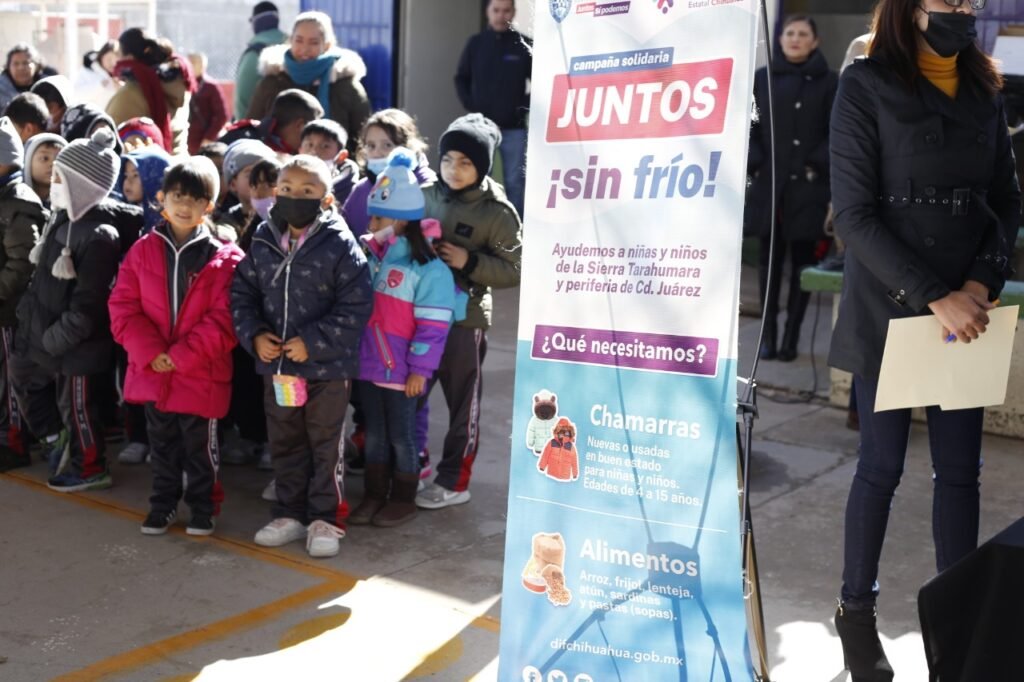 Como parte de la campaña “Juntos sin Frío” que el Gobierno del Estado lleva a cabo en la entidad, este martes continuó la entrega de 250 chamarras a niñas y niños de educación básica de Ciudad Juárez.