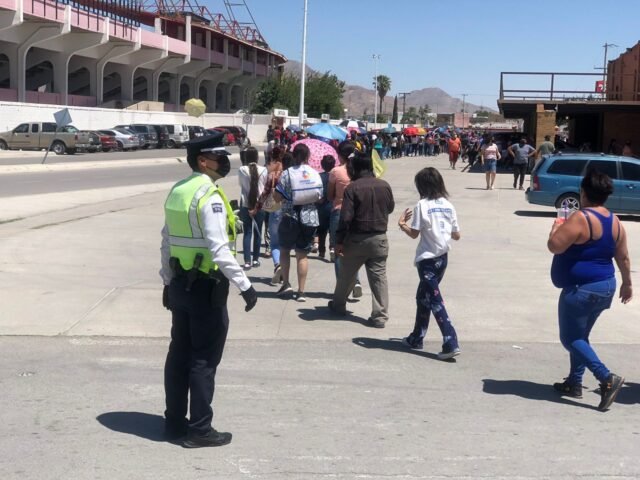 La Coordinación General de Seguridad Vial desplegó a 24 elementos y 6 unidades para apoyar en las actividades emanadas de la jornada de vacunación contra el COVID-19 realizadas en el Estadio de Béisbol Juárez Vive sobre la avenida Sanders, así como en el Centro de Convenciones Las Anitas en la avenida Ramón Rayón.