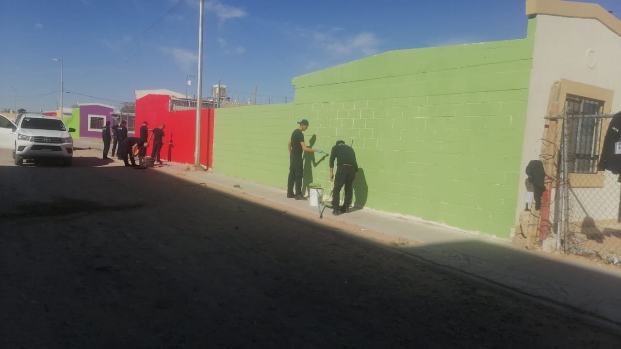 Jóvenes cadetes que se encuentran en el curso de formación policial en la Academia Municipal de Policía, llevaron a cabo actividades de remozamiento en diversos espacios públicos de la localidad.
