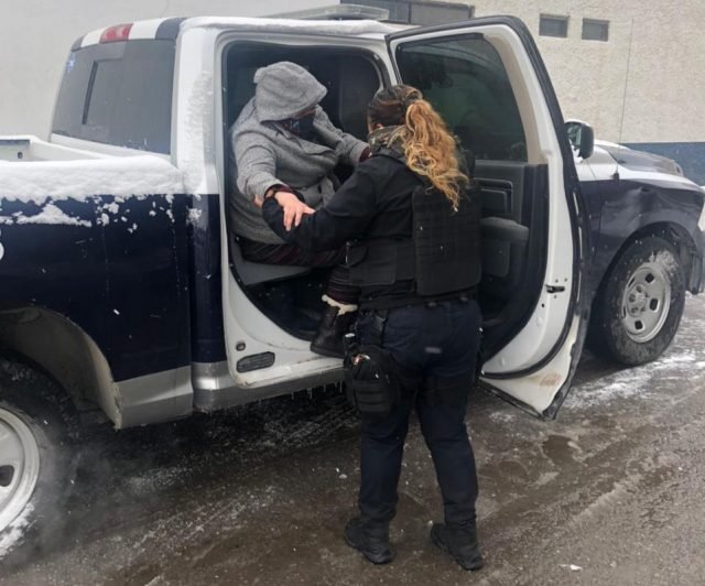 Elementos de la Secretaría de Seguridad Pública Municipal brindaron apoyo a un grupo de 13 migrantes, quienes fueron trasladados al Departamento de Trabajo Social ya que no contaban con un lugar para pasar la noche ante las bajas temperaturas.