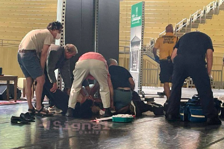 Un policía que había sido asignado al evento detuvo de inmediato al atacante, indica el texto.