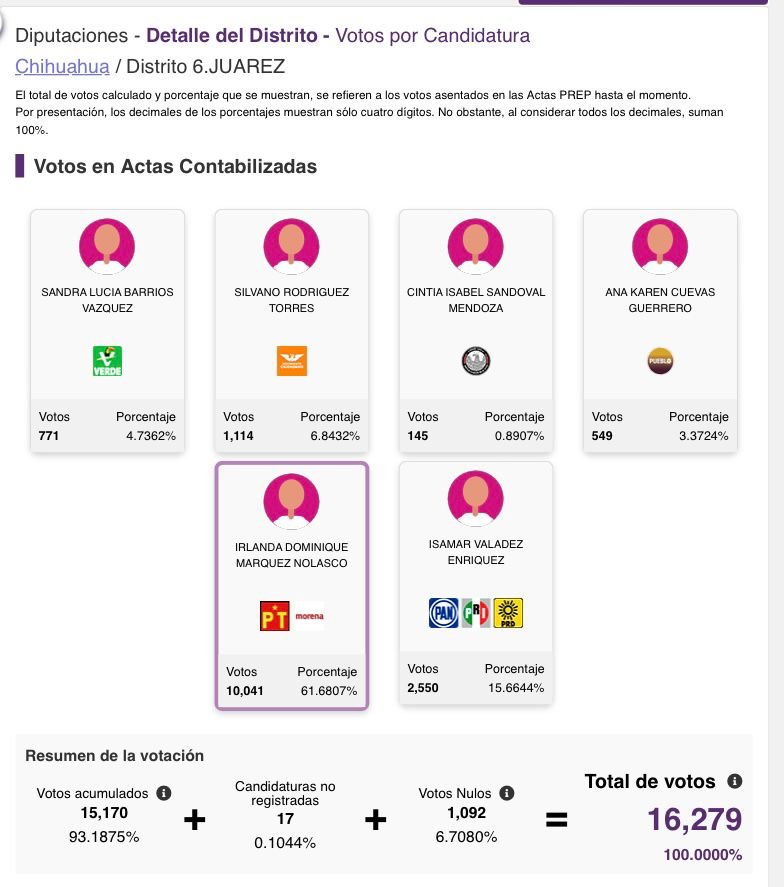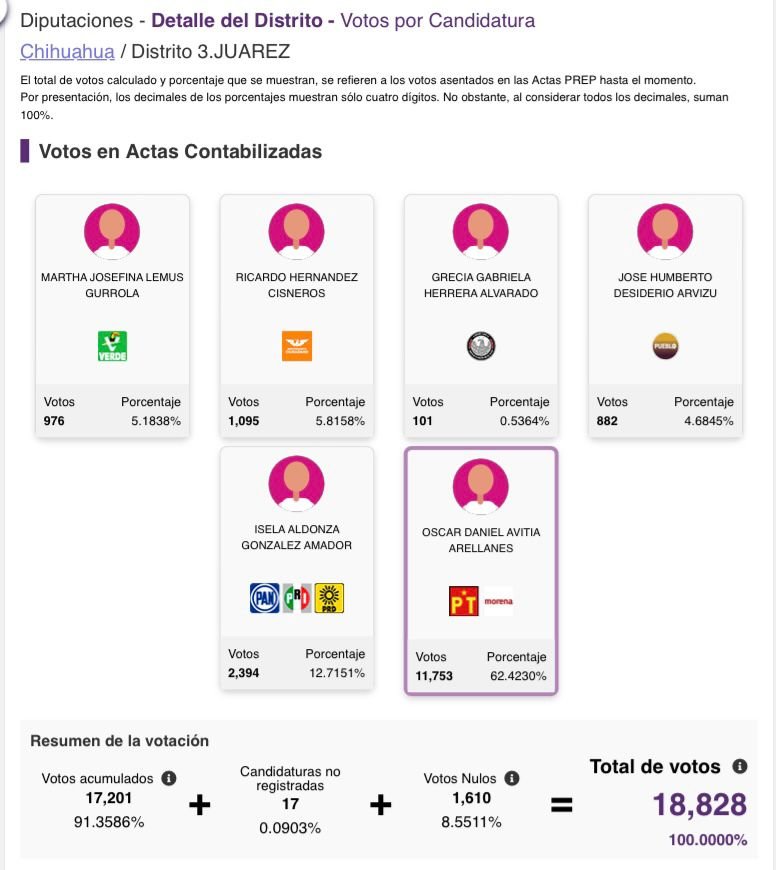 En Ciudad Juárez, se presenta la ventaja en casi total para los candidatos de Morena, y de la alianza Morena PT.