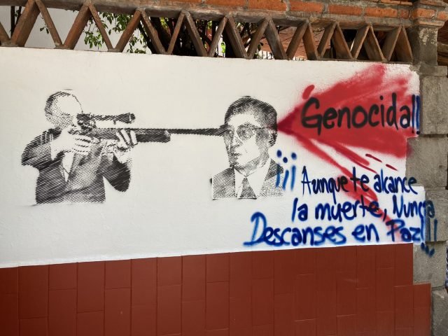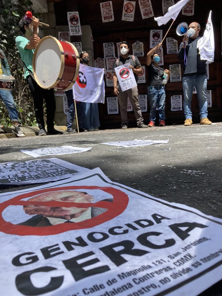 “Aquí vive uno de los expresidentes que inició en México la estrategia conocida como terrorismo de Estado o la mal llamada Guerra sucia, y a él se deben muchas de las desapariciones y los actos de represión que todavía a la fecha, quedan impunes”, explicó Ramírez.