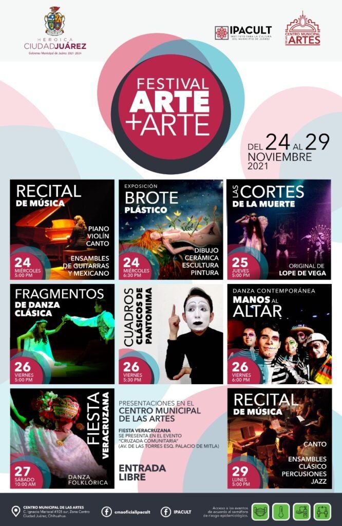 Todo está listo para que la tarde de este miércoles inicien las actividades del tradicional Festival “Arte+Arte” que el Instituto Para la Cultura del Municipio de Juárez (IPACULT) y el Centro Municipal de las Artes (CMA) ofrecen al público con motivo del cierre de semestre.