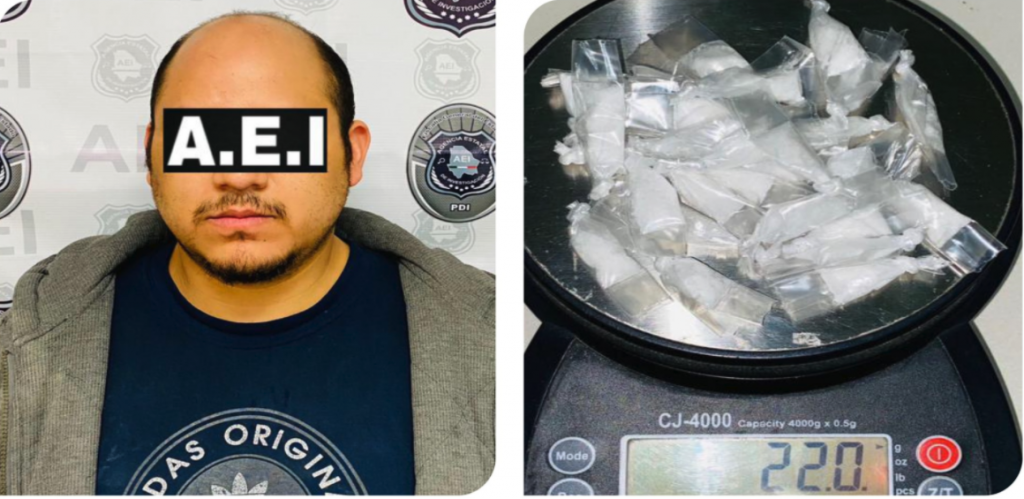 Policías de la Agencia Estatal de Investigación adscritos al Centro de Operaciones Estratégicas, detuvieron en los términos de la flagrancia a un masculino de nombre Jorge Armando R. C., de 29 años, como probable responsable de delito contra la salud en la modalidad de narcomenudeo.