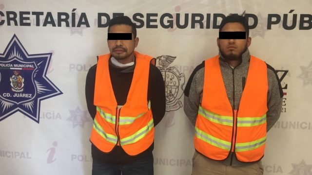 Elementos de la Policía Municipal realizaron el arresto de Erick C. H de 31 años y Juan S. T., de 25 años, por su presunta responsabilidad en la comisión de delitos contra la Ley Federal de Armas de Fuego y Explosivos.