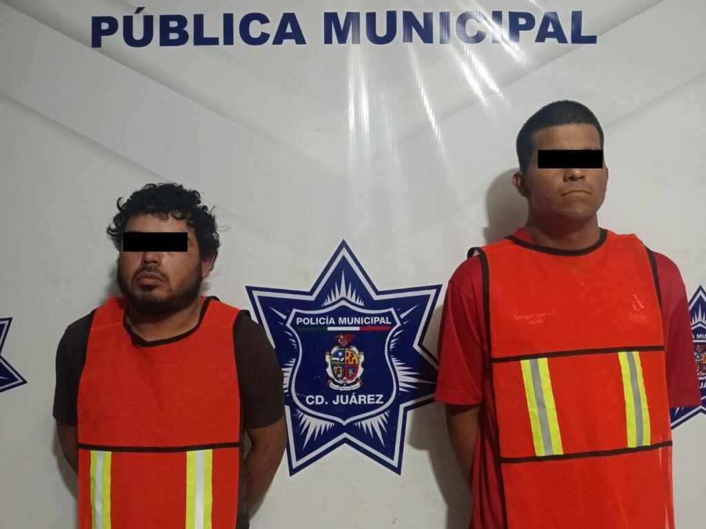 Agentes de la Secretaría de Seguridad Pública Municipal arrestaron a Alan Daniel M. M. y Jorge D. C., por su presunta responsabilidad en la comisión del delito de daños al municipio y desobediencia y resistencia de particulares.
