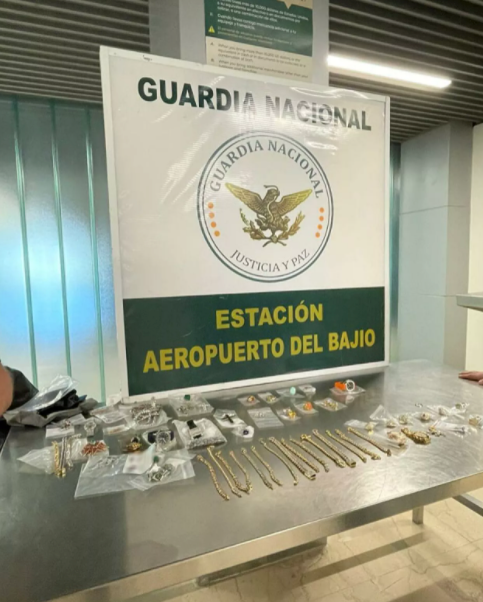 MÉXICO- Alrededor de 80 piezas de joyería fueron decomisadas en el Aeropuerto Internacional del Bajío, en una operación de seguridad coordinada por la Guardia Nacional, informó la dependencia en un comunicado.