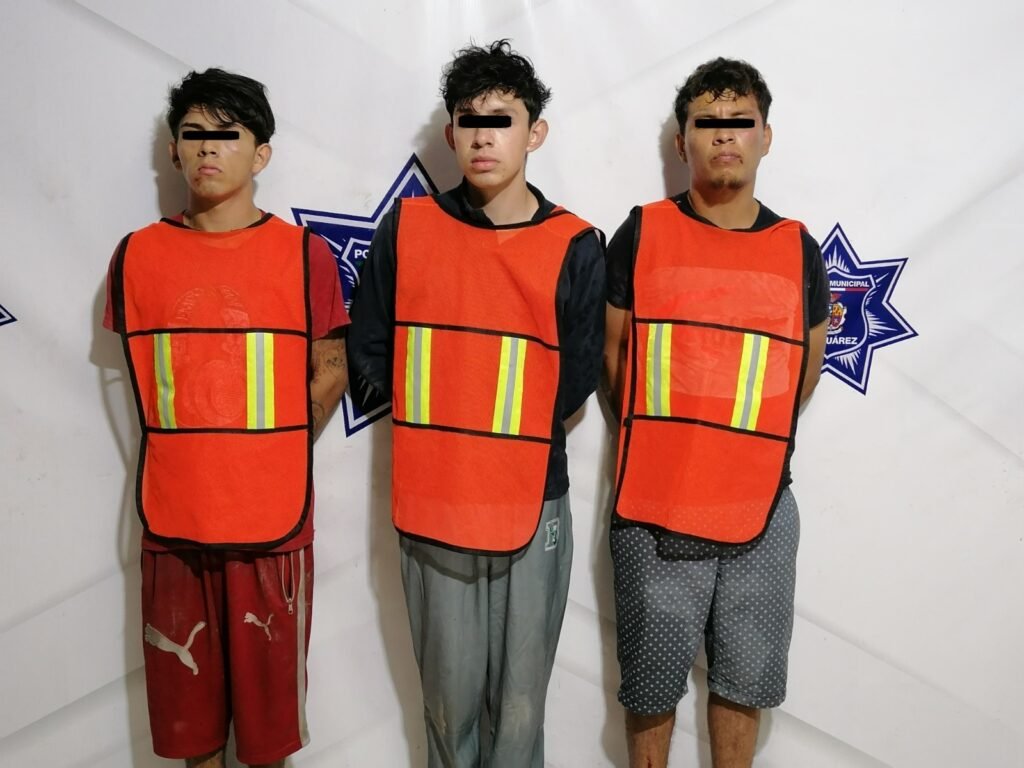 Elementos de la Secretaría de Seguridad Pública Municipal arrestaron a Jaciel Jovanny R. N., Juan Carlos M. G., y Julio J. R., por su presunta responsabilidad en la comisión de los delitos de daños al municipio y desobediencia y resistencia de particulares.