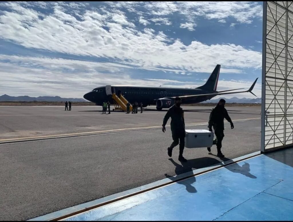 Este domingo a las 11:50 de la mañana arribó el vuelo número 83 de la Fuera Área Nacional a la Ciudad de Chihuahua con el segundo cargamento de 60 mill dosis de la vacuna Pfizer Pediátro contra SARS-CoV-2.