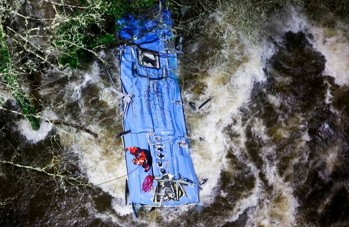 Asciende número de muertos tras caída de autobús a un río en España