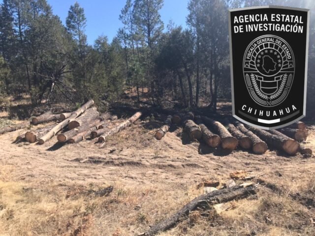 En atención a una denuncia interpuesta por habitantes del Ejido Bilaguichi, en el municipio de Guerrero, elementos de la Agencia Estatal de Investigación de la Fiscalía de Distrito Zona Occidente, aseguraron 205 trozos de madera de pino, que fueron cortados clandestinamente.