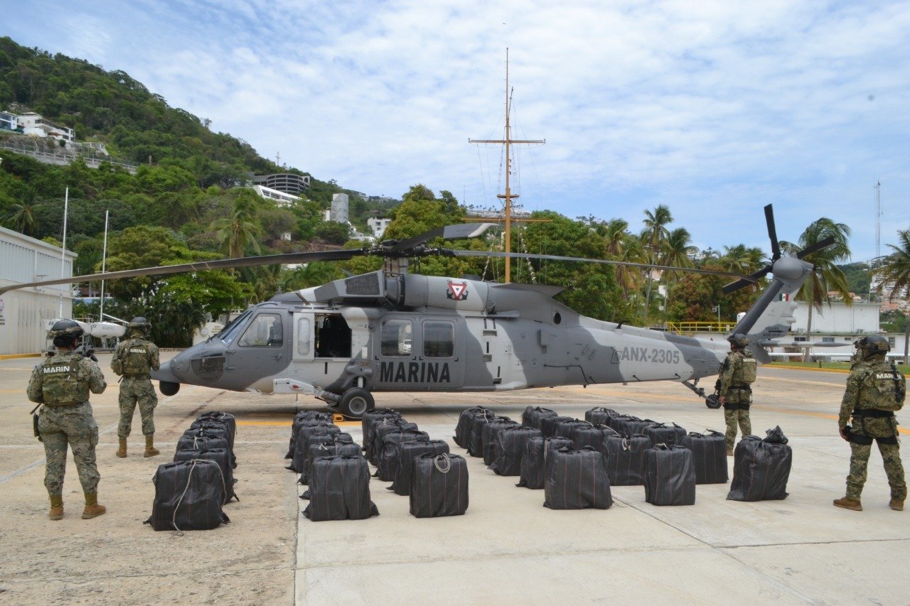 Por lo anterior, personal de la fuerza de reacción de aeronaves de la Armada de México y personal de Infantería de Marina por tierra, aseguró citado vehículo y 36 bultos con un peso aproximado de 1,347 (un mil trescientos cuarenta y siete) kilogramos de presunta cocaína, los cuales fueron puestos a disposición de la Fiscalía General de la República para la integración de la carpeta de investigación correspondiente.