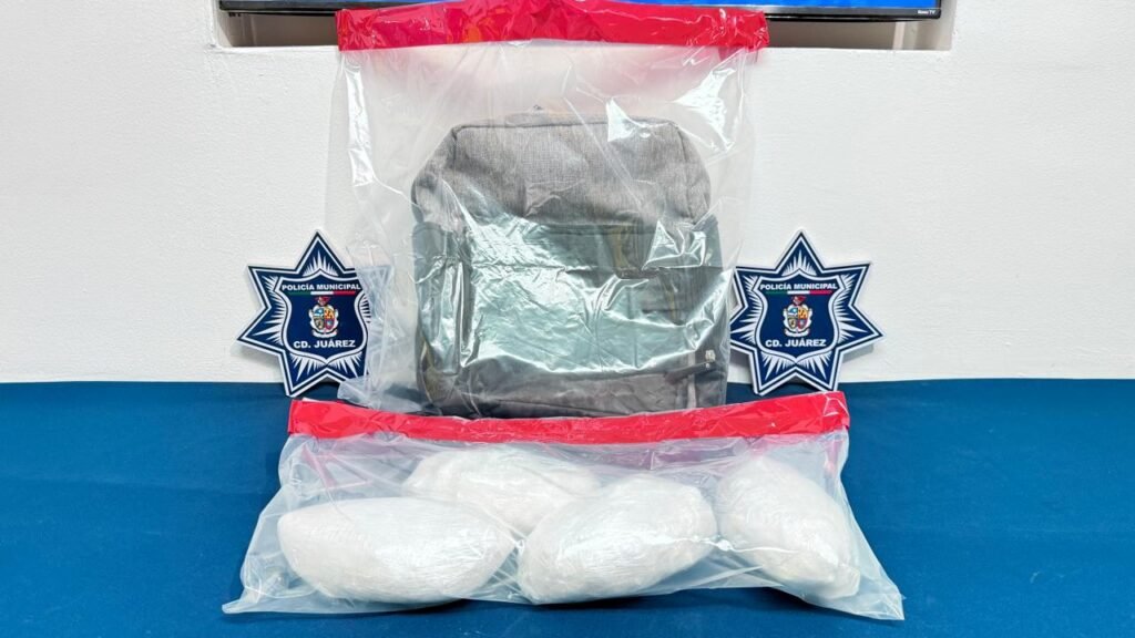 Por tal motivo, los agentes los abordaron conforme a los protocolos de seguridad y al realizarles una inspección preventiva, localizaron en el interior del automotor una mochila color gris con cuatro paquetes flejados que contenían una sustancia granulada con las características propias de la metanfetamina comúnmente conocida como cristal, con un peso aproximado de 508 gramos cada uno.