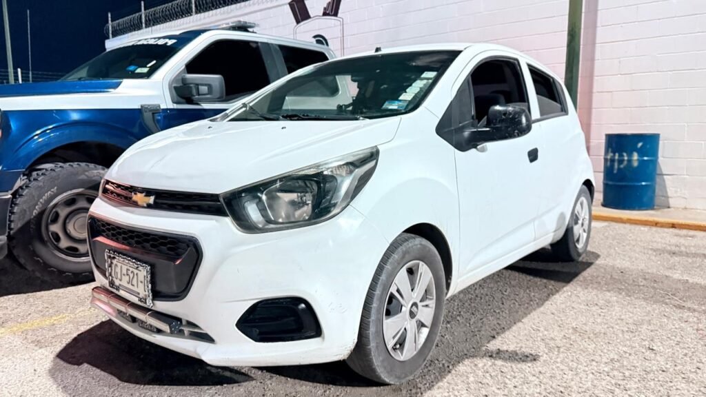 Los hechos se registraron en el fraccionamiento Senderos de San Isidro, luego de que elementos municipales atendieron un llamado recibido al número comunitario del Distrito Poniente 656-493-35-87, en el cual reportaron sujetos armados a bordo de un vehículo de la marca Chevrolet Beat, color blanco, modelo 2019.