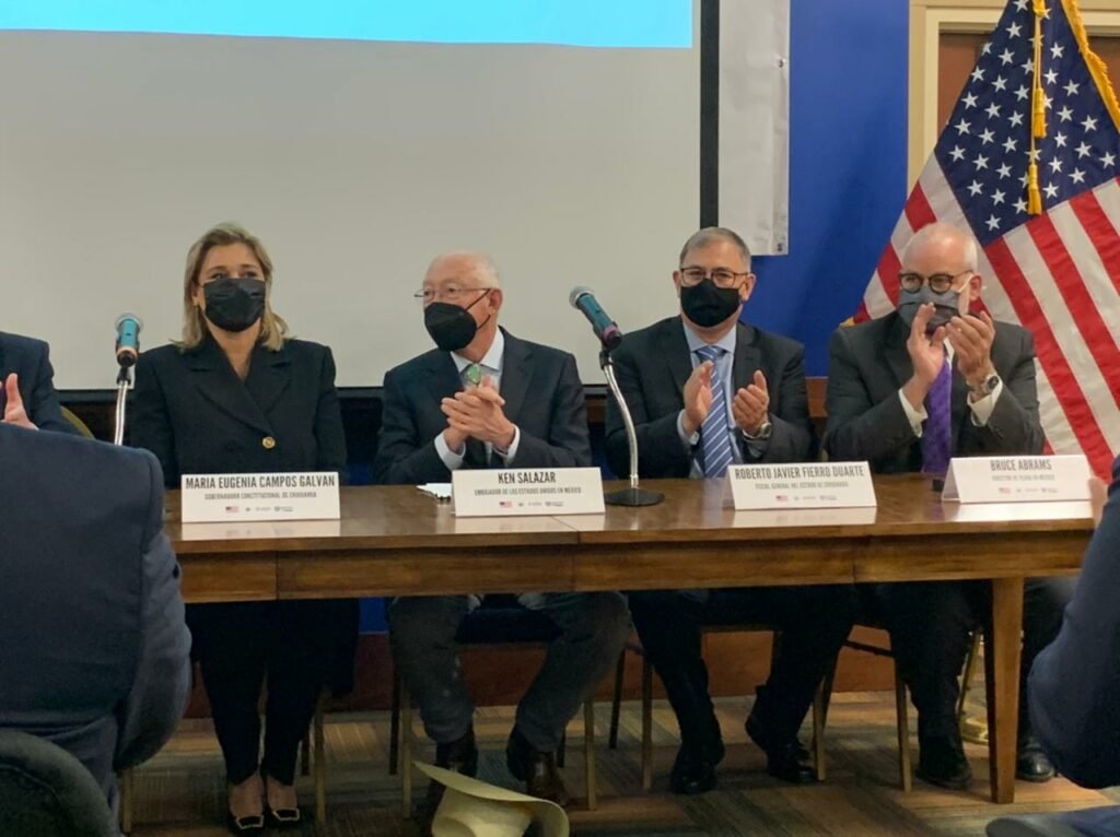 El acuerdo firmado por la Gobernadora y las autoridades norteamericanas, establece los mecanismos binacionales a desarrollar en cinco municipios de la entidad, con acciones conjuntas en materia de prevención de la violencia y la delincuencia, mitigación de la criminalidad e incremento de la confianza de la ciudadana hacia las instituciones de seguridad y procuración de justicia.