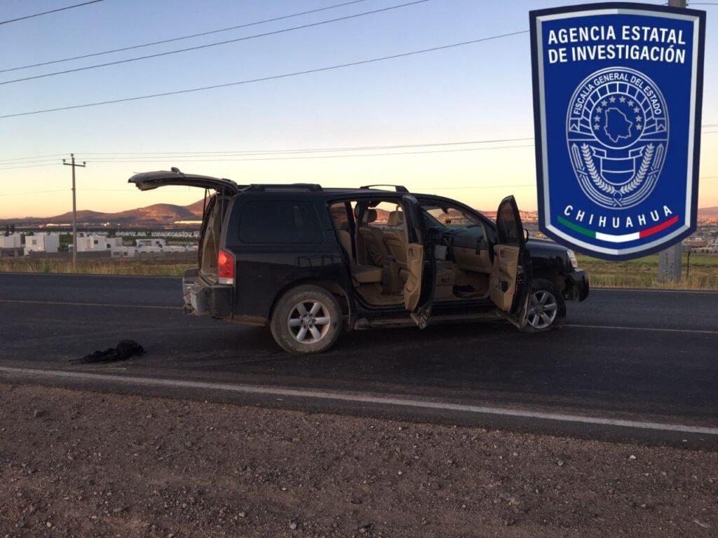 Posteriormente, en la Avenida Ejido, entre la calle 4ta y Libertad de la colonia Anáhuac, localizaron abandonado un vehículo blanco Mercedes Benz, línea Sprinter, con placas del Estado de México, el cual presenta impactos de arma de fuego. Dicho automotor está relacionado con los mismos hechos.