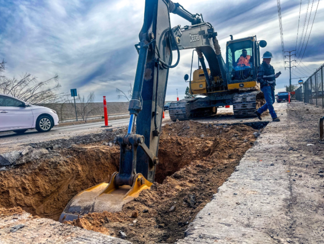 La Junta de Agua y Saneamiento de Juárez informa a la ciudadanía que, por motivos de seguridad, fueron cerrados dos carriles del bulevar Cuatro Siglos, debido a un hundimiento de menor escala registrado a la altura de la calle Calzada del Río.