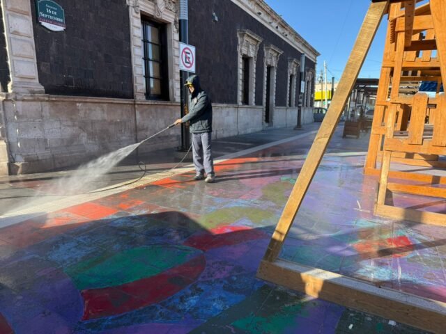 Como parte de las actividades que se realizan en el Centro Histórico para mantenerlo limpio y ordenado, personal de la Dirección de Limpia llevó a cabo labores en la avenida 16 de Septiembre y calle Mariscal, en el exterior del Centro Municipal de las Artes (CMA).