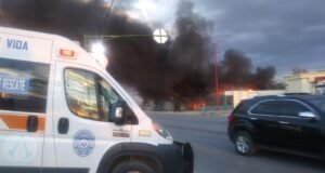 Atienden incendio en una fábrica de tarimas