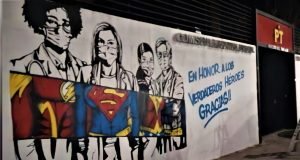 Con mural, homenajea PT a personal médico