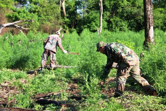Se trata de un operativo conjunto entre agentes especiales antidrogas y de la Fuerza Aérea Paraguaya (FAP), que tras cuatro jornadas de intensas incursiones en zonas boscosas pudieron erradicar 80 hectáreas de plantaciones de cannabis.