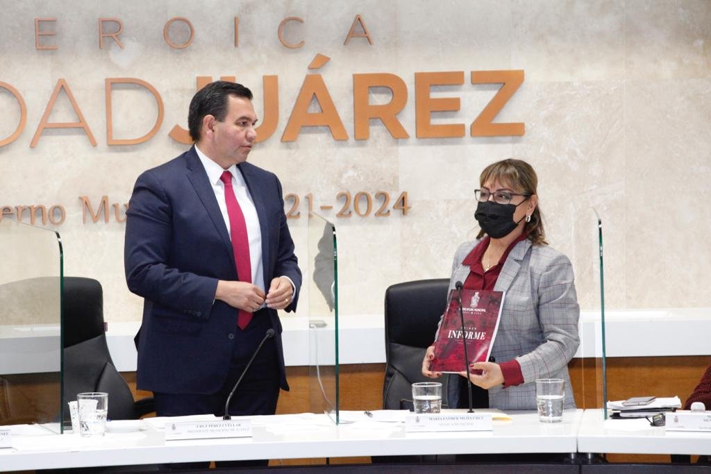 El Cabildo de Juárez analizó este día 14 asuntos en su sesión ordinaria número 6, entre los que se encuentran la autorización para entregar un donativo de 153 mil pesos para la reparación de la techumbre de un plantel preescolar, así como la donación de 300 luminarias al municipio de Práxedis G. Guerrero.