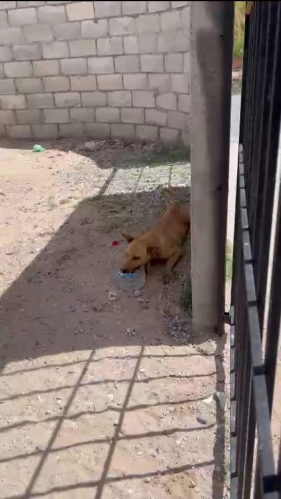 Al percatarse de que en el domicilio no se encontraban los moradores, los oficiales se dieron a la tarea de brincar la cerca para accesar al domicilio y poder auxiliar al can, por lo que una vez que fue liberado se le brindó agua debido a que se encontraba en estado de deshidratación.