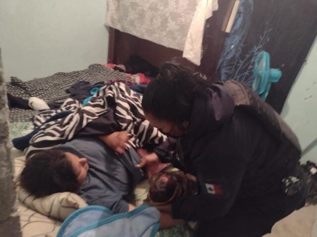 Agentes de la Secretaría de Seguridad Pública Municipal asistieron a una mujer brindándole los primeros auxilios luego de que se encontraba en labor de parto.