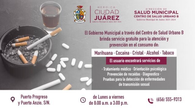 Los interesados pueden comunicarse al número de teléfono 656-555-9313, donde personal del Centro de Salud Urbano B les programará una cita para la intervención, además, una vez que se realice el diagnóstico correspondiente, se definirá si el ciudadano continuará con su orientación en el Centro de Salud o se le canalizará con otra institución especializada.