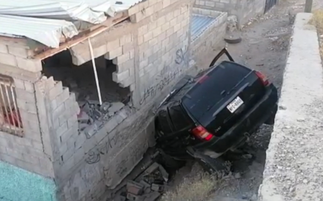 El percance ocurrido en las calles Pinotepa y Fidel Avila minutos antes de las 5:00 am el conductor de una camioneta jeep cherokee color negra el cual viajaba a exceso de velocidad perdió el control de la unidad y cayó al patio de una le las viviendas.