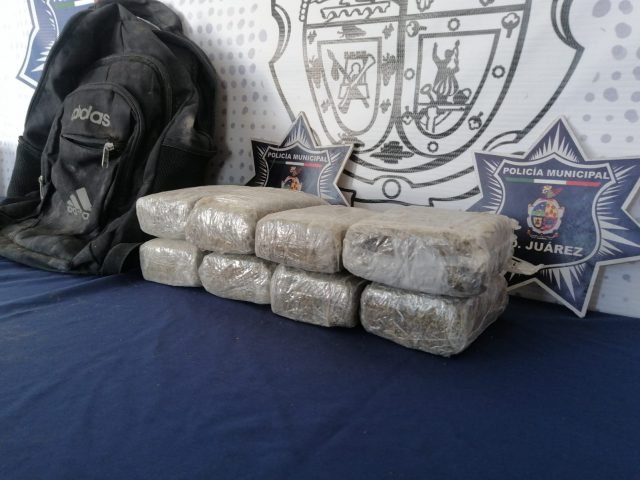 Razón por la que de inmediato los policías preventivos se trasladaron al lugar, en donde observaron a un sujeto que reunía las características proporcionadas en la denuncia, y al realizarle una inspección preventiva por protocolos de seguridad, le localizaron para su aseguramiento ocho paquetes de marihuana confeccionados con cinta color canela dentro de una mochila, quedando en ese momento bajo arresto.