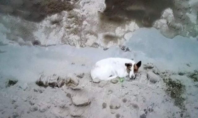 Lo más probable es que se trate de un perro callejero, pues carece de collar y tampoco hay quienes lo busquen. Ahora corre el riesgo de morir de hambre o de ahogarse, y es que en la zona están cayendo lluvias constantes. Ensanchan el socavón y lo inundan.